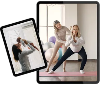 Gain access to two full body exercises that help you to connect with your body again. You are able to do these with or without baby around!